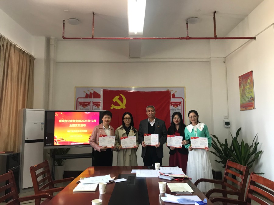 2021年12月2日,党政办公室党支部在图书馆六楼机关党员活动室开展2021年“牢记政治生日,不忘入党初心”主题党日活动,党政办党支部全体党员参加了本次活动,活动由党政办党支部书记聂玮主持。