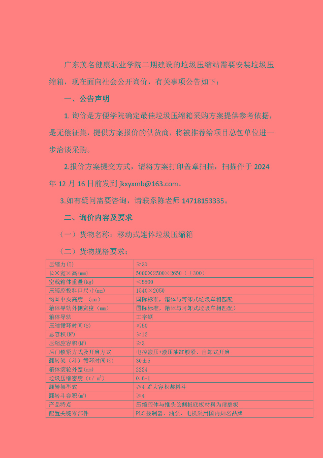 垃圾压缩箱询价公告.docx