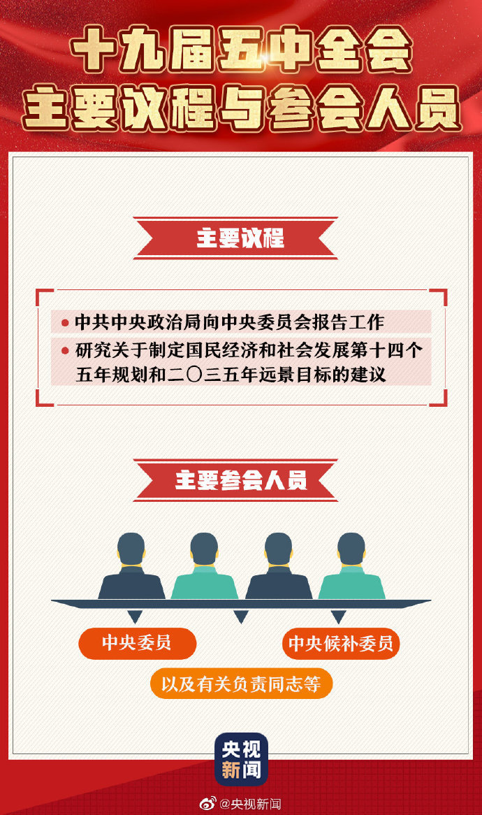 中国共产党第十九届中央委员会第五次全体会议🕕🚶➡️,于10月26日至29日在北京举行。主要议程是➾,中共中央政治局向中央委员会报告工作🧙🏽♀️,研究关于制定国民经济和社会发展第十四个五年规划和二〇三五年远景目标的建议。今天,一组图带你了解十九届五中全会🪰。