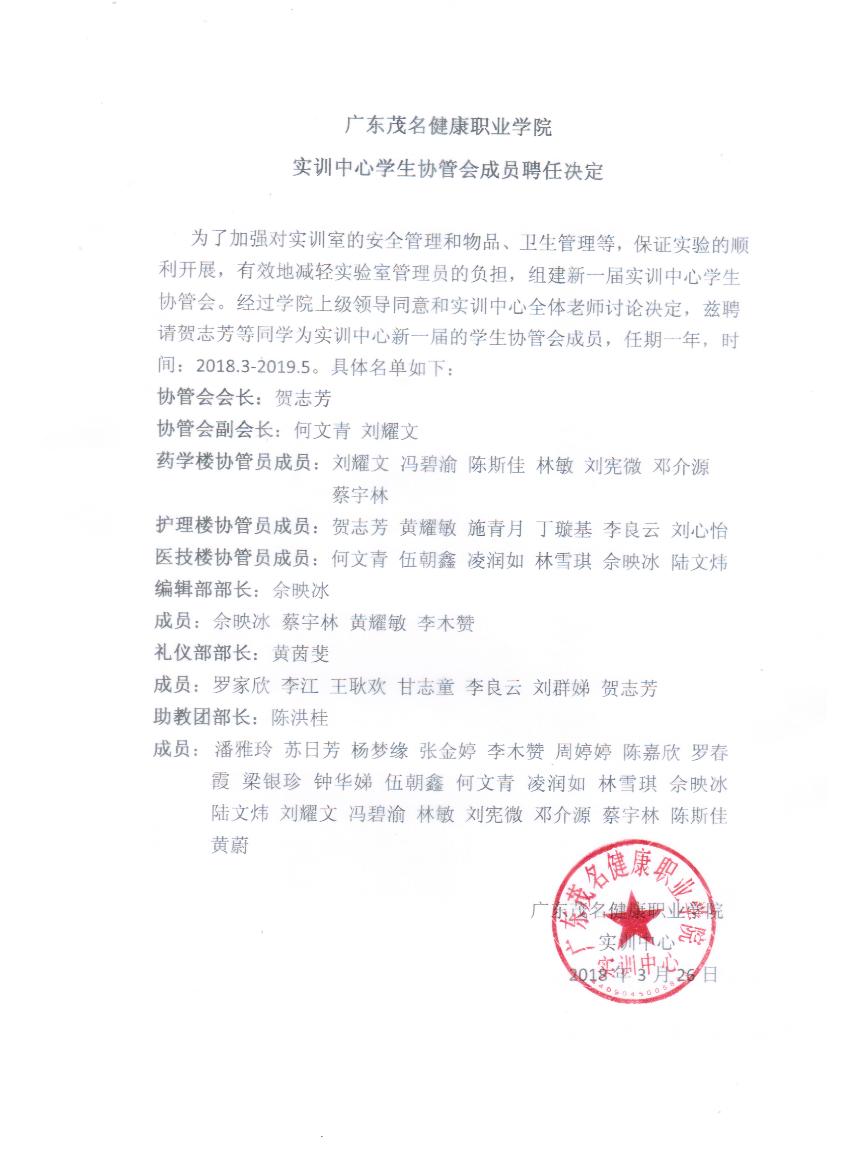 彩神实训中心学生协管会章程