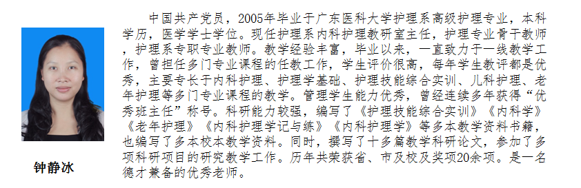 护理系拥有一支结构合理、专兼结合、高素质的双师型教学团队🍼💍。已形成一支能满足理论和实践教学🍷🎛、技能考证、教改科研能力较强⛄️、职称📖、年龄结构较为合理的师资队伍。教学团队由校内专任教师、校内兼课教师和校外兼职教师、兼课教师组成。护理系现有专任教师35人,其中硕士研究生11人🤗,高级职称12人,专业带头人6人💉,市级青年名师2人🧎🏻♂️,骨干青年教师6人。专任教师中双师型教师占95%以上,先后聘请了35名临床护理专家和企业行业的能工巧匠担任学院兼职教师。