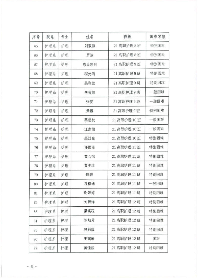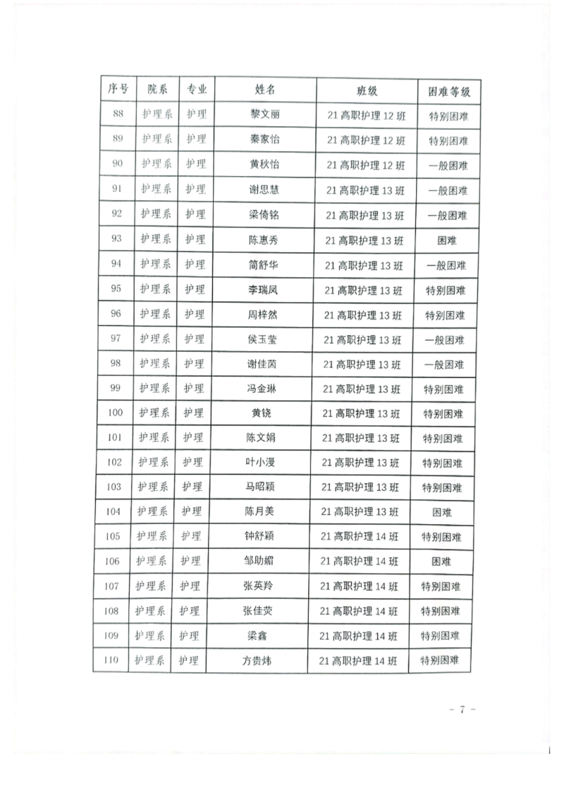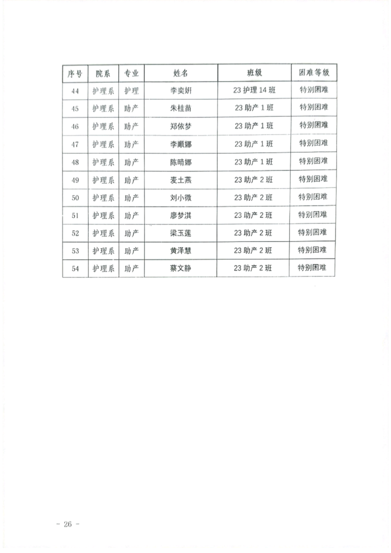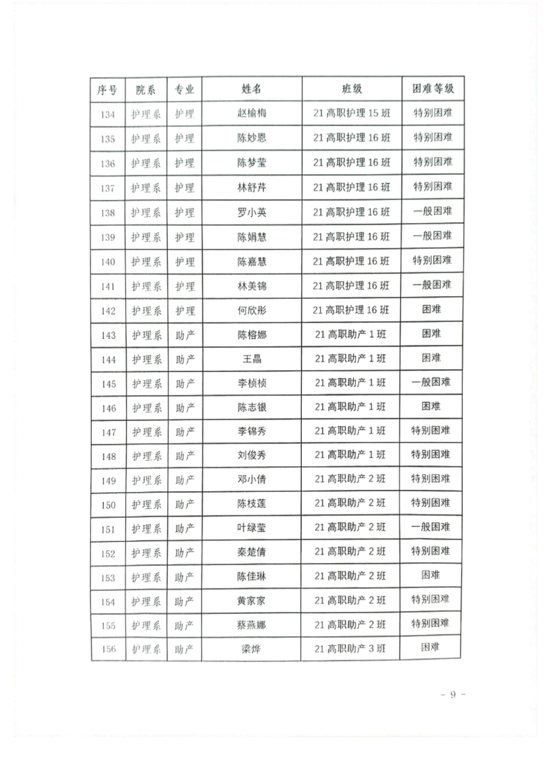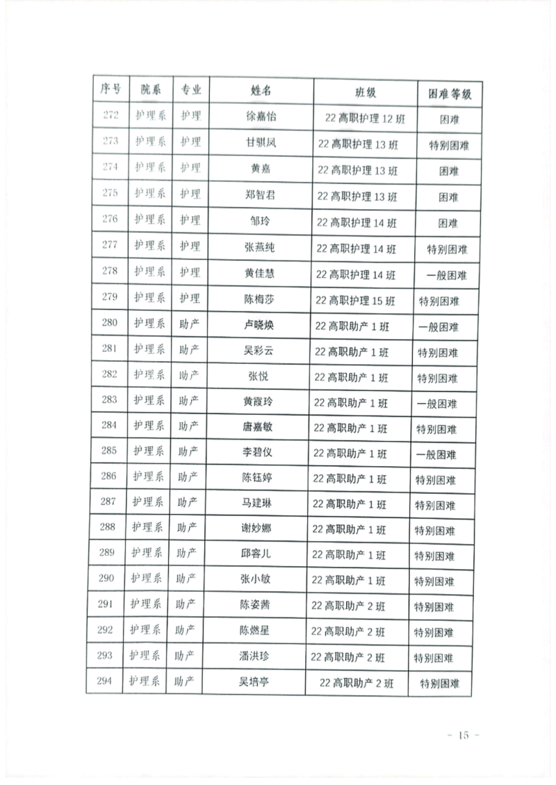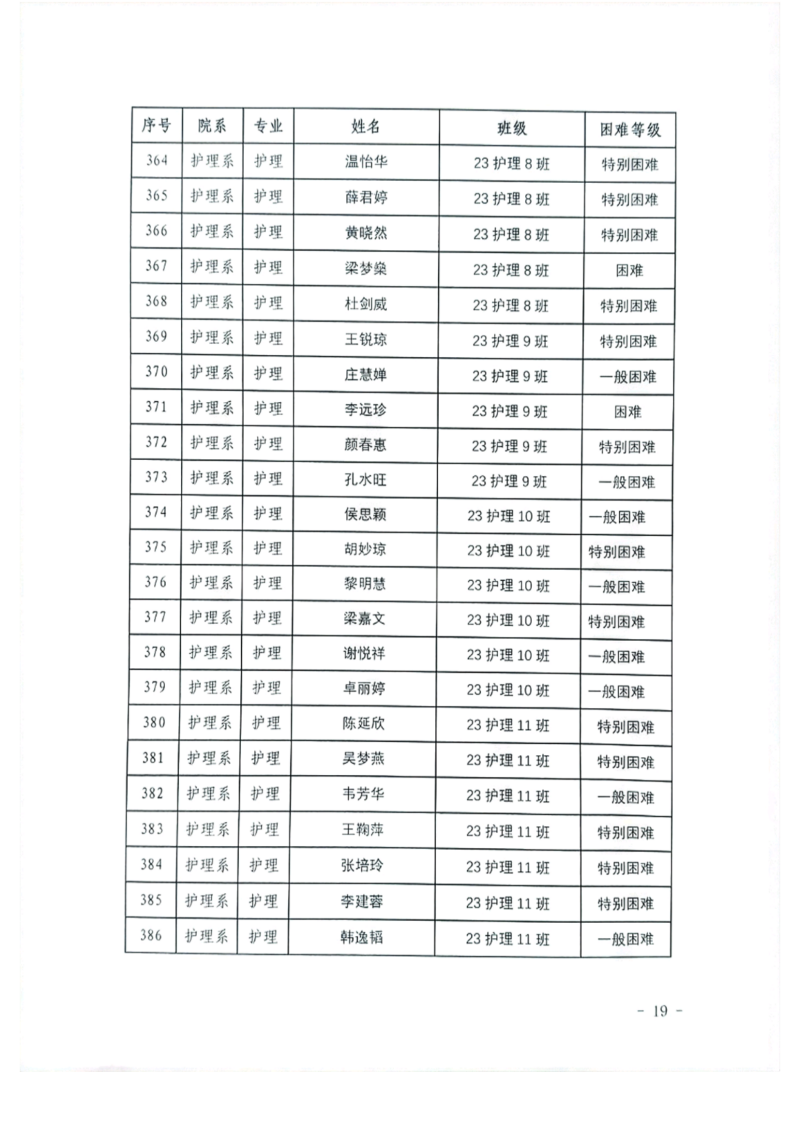 关于护理系2023年秋季学期国家助学金和新生资助初审名单的公示