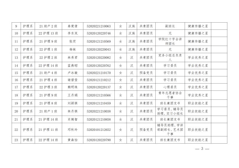 护理系2022-2023学年“茂健之星”推荐候选人名单公示