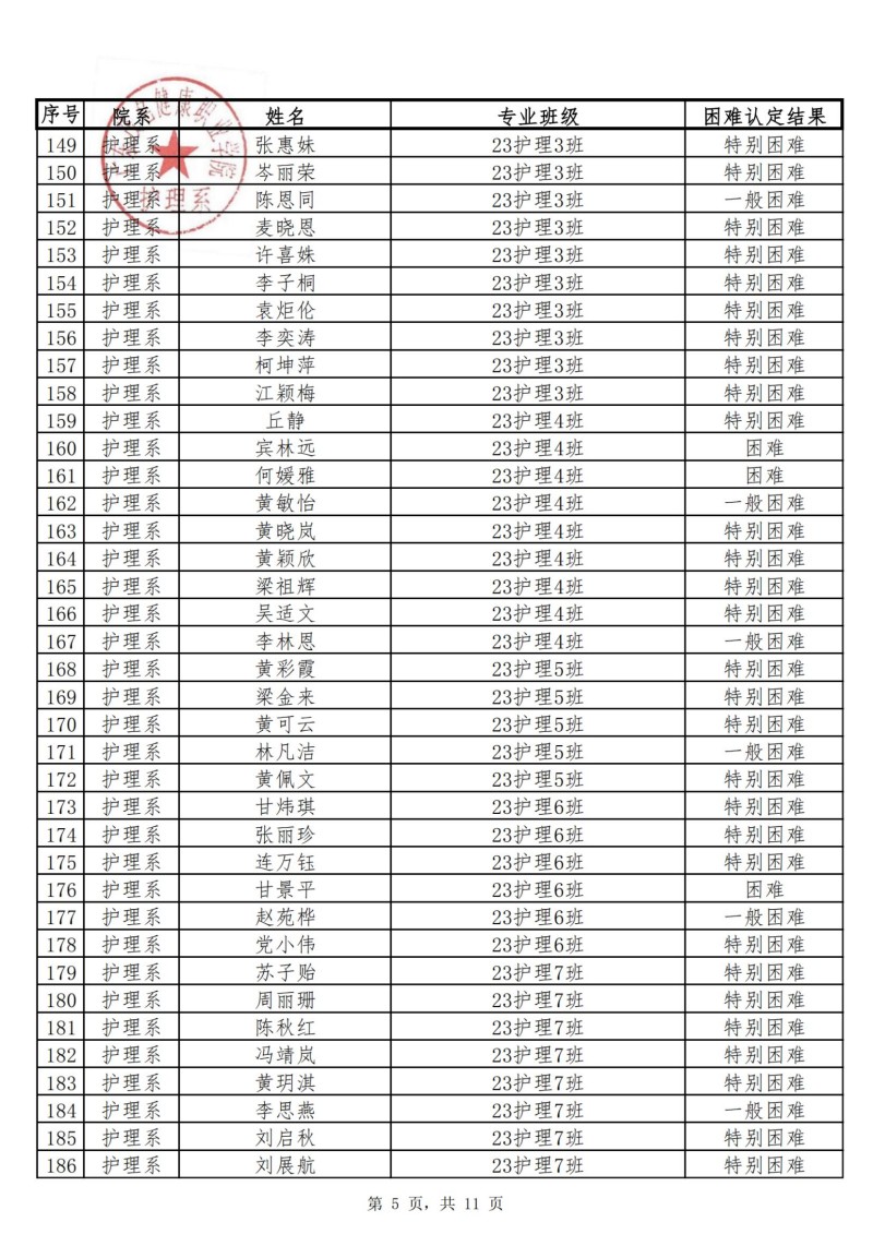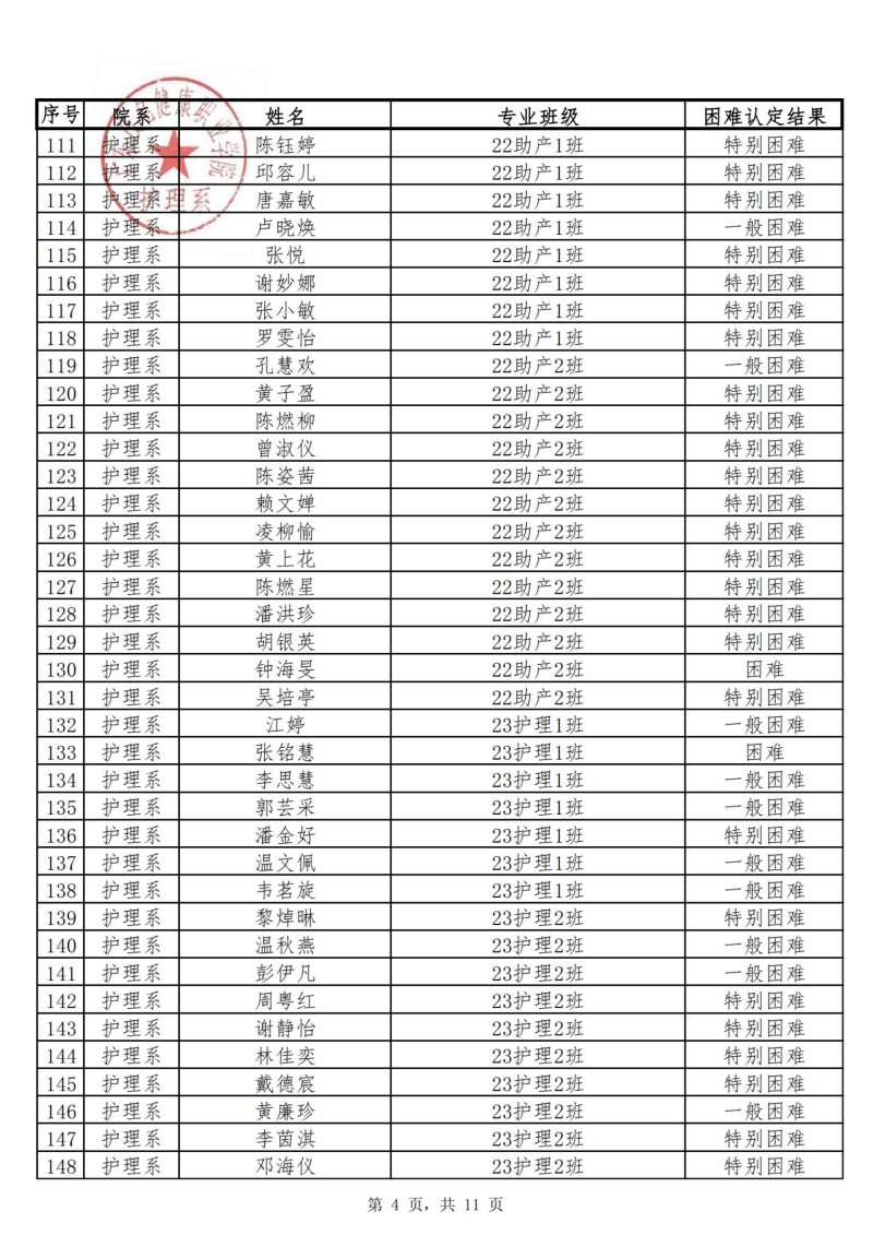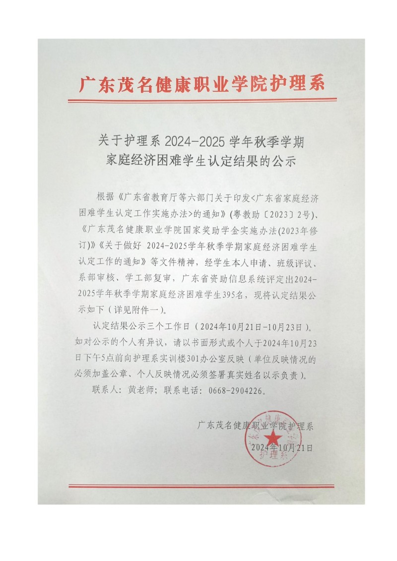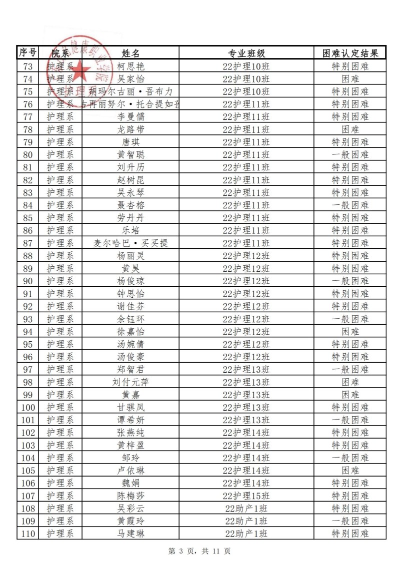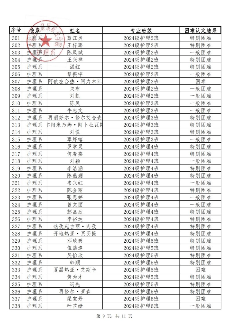 关于护理系2024-2025学年秋季学期家庭经济困难学生认定结果的公示
