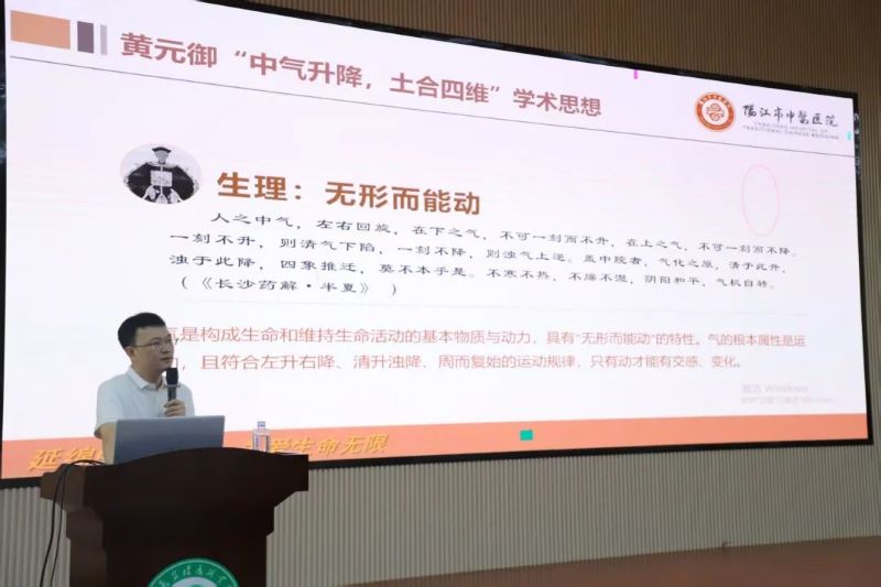 讲座上,黄瑞聪基于黄元御“中气升降,土合思维”学术思想展开,结合失眠诊疗,解析中气为本体、脾胃中土为枢纽,以及四维与中气升降的关系,如病理上“中气衰,升降窒,四维病” ;生理上“无形而能动”。他不仅详细介绍了八种治疗失眠症的中成药,还深入讲解了致和汤拟方思路“守中致和”,借柴胡、党参等药材,调畅气机、补益中气,展现了中医整体调理、辨证施治的特点,让学员们领略了黄元御学术思想与中医诊疗智慧。